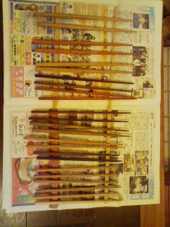 太いの、細いの、細くて短いの の3種類作って、荏油を3回塗りました。