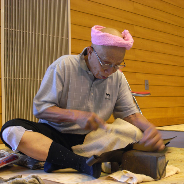 1位をとった方の鉋。 この刃口の広さ、刃の出し方、刃の角度。すごー。 台も檜で作ってあるようです。これ専用にわざわざ作ったんですね。 削る材が浮くので下はビスで固定してあります。 裏に手押しと自動が用意してあって誰かが削った材(けっこうガタガタになる)は手直しして次の人が使っていました。 はしっこにひっかけるような感じで、 一気に引きます。この速さ! すごい抵抗力なんでしょうね。一気に力任せに引かないと切れないみたいでした。 ばたついて浮いちゃったり、途中で止まっちゃったり。 薄削りでは3μとか出すのに対し、厚削り1位の方は3mm以上出してました。おもしろいですね~。 その他外では、小だたら構築なんてものが。 島根県の「鉄の歴史村地域振興事業団」というところからの出展です。 たたらは砂鉄と木炭から和鋼を作る装置です。もののけ姫のたたら場のシーンのイメージ。 ぽこぽこ穴が空いててカラフルなのがケラで、これから少量の玉鋼をとるのだそうです。 真ん中左側のとろっとしたのは鋳物の材料になるズクというものだったっけ? 初めの方に出来てくるんだそうです。 島根の出雲はたたら製鉄で有名なところで、12月にはたたらサミットなんていうのもあるそうです。 削りもつきつめるとこんなところまでたどり着くのかな。 これは釿(ちょうな)ではつったり、大きな鋸で材料を切り出す体験をしていたところ。 戦後5年目くらいから製材機械が出回ってきたんだそうで、 それまではみんなこうやって…とか思うとすごすぎる! これは2日目の薄削りの材を見守る亀仙人。 来年は埼玉で開催だそうなので行けないだろうな…。行けるかなぁ。 滞在時間9時間くらいだったけど、師匠や友人に会えて話が出来てリフレッシュ!できました~。 上條先生に「頑張んなさい」とがしっと握手もらって帰りました。 頑張らないとですよー! PR 2010/09/26(Sun) 23:57:14