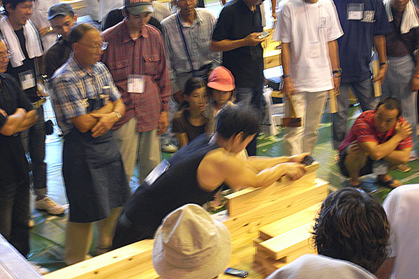 さ、削ろう会inはつかいち 一日目で行われた厚削り大会。