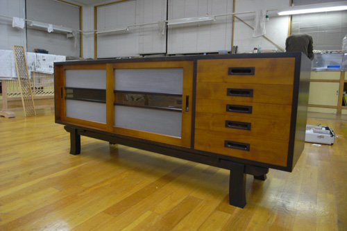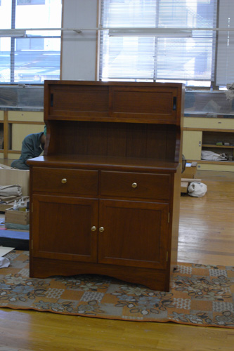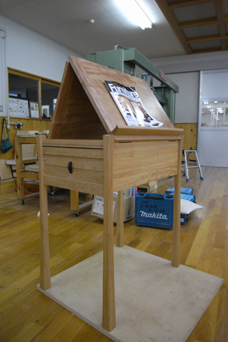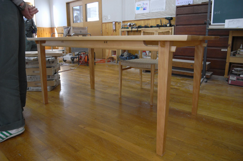 今回のは横から見たときに転んでいる脚です。そういう脚のほぞ加工をやってみたかったからです。ちょっとでも機械の角度のセットが違うときっちりくっつきません。またまた勉強になりましたー。四方転びはもっと複雑なので、やると頭と精度が足りなそうです。