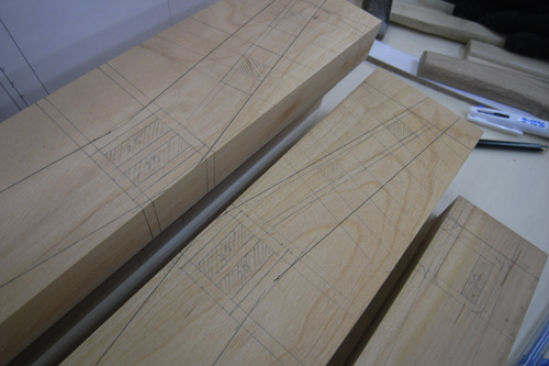 穴を開けるときに治具が必要になりますが、並べて木取った方が、歩留まりがよいです。材料に悪いことをしました。反省。