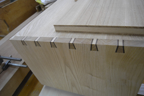 モデルとしたものは北欧の家具だったのですが、蟻の部分はアメリカンな感じになりました。寄せ木の部分はウォールナットです。