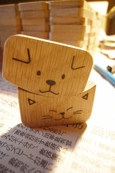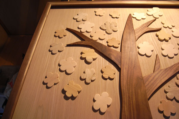 2人にメッセージボードと披露宴後のプチギフトの注文をもらったので、 (むしろなんか作りたいー!って私が言ったから強制しちゃったかも。) バリバリ頑張っちゃいました~! 頼んでくれてありがとう!2人との思い出を浮かべながら作るのも楽しかった! ◆1人目は4月29日に浦上天主堂で挙式。 中2から高3まで一緒のクラスだったふみと旦那さん。 ふみにはメッセージボード。 このとき花の部分はくっついてなくて、当日各自メッセージを書いてホットボンドでペタっと貼り付けました。 【サイズ】880mm×880mm×t=30mm 【額縁と木の幹】ウォールナット 【花】栗、ケヤキ、スプルース、ベイマツ、かや の5種類 【下地】タモ突板 【仕上げ】オイル仕上げ 今度ガラス入れついでに新居におじゃましに行きます! 床の間に飾ってくれているらしいです(笑) ◆2人目は5月8日に諏訪神社で神前式。 よく遊んでくれ、弾丸ツアー仲間でみんなの世話役、明日香と旦那さん。 明日香には披露宴後のお見送り時に配るプチギフトで箸起きのセット。 なんと仕上げのオイル塗りに本人と結婚式を終えたばかりのふみが西海までお手伝いに来てくれました。 ずらーり。170セット!みんな眠いのに遅くまで頑張ったね~! 旦那さんが動物好き、かわいいの好きということでイヌとネコの箸起きです。 焼印特注で後ろにはしっぽがついてます。 【サイズ】43mm×50mm×t=8mm 【材質】ナラ 【仕上げ】クルミ油仕上げ 長崎らしい場所での結婚式に参列者のこっちまでわくわく! 楽しんじゃいました。 しかもこんなに結婚直前の人に密着したことがなく、いろいろ大変なとこも見たので 結婚式当日の見方も違ったというか、無事終わってよかったなぁとしみじみ。 感慨深いものがありました。 どちらの結婚式も披露宴もそれぞれ彼女達らしくてすごくよかったです。 そして製作したこの2つのものも、勉強になった! 2011/05/10(Tue) 21:05:36