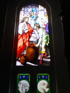 綺麗ですよね~。 2段目左の写真のかっこいい額縁が壁にずらーっと並んでいます。 3段目のステンドグラスの向こうにはキリスト教墓地やマリア像が見えます。 行く前日に、浅見光彦シリーズで軍艦島が舞台になっていたものが放送されていましたが、 そのドラマで平戸のこの教会もロケ地になっていて、「そうだ行って見よう!」と思った次第です。 この三廊式?っていうんですかね中の3層になった作りが本格的な教会の造りで珍しいんだそうです。 外壁は赤レンガ、屋根は瓦でした。 建物の外の石畳とか門?も古くて荘厳な雰囲気でした。 なくなったおばあちゃんと同い年、大正7年生まれのこの教会、 「長崎の教会群とキリスト教関連遺産」が世界遺産になれば、この教会も世界遺産になるそうです。 行くなら平日がおススメです。 この日見学が一緒になったのは三重県からのご夫婦1組のみで熱心に写真を撮っていらっしゃいました。 私はというと前回書いた結婚式の時の家と実家の往復のどこかで カメラのバッテリーの充電器をなくしてしまったので、ボロ携帯のカメラで撮影してました。 でも、そのご夫婦は大嵐の前で薄暗かったので、うまく撮れなかったのか、 私の携帯の画面見て携帯の方が色綺麗って言ってました。 携帯のカメラって適当にうまく撮ってくれますよね。