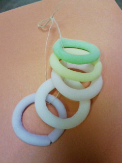 でもやっぱりちゃんとカメラ持って行きたいですね~。 で、その後大曲家に行ったら、綺麗なお茶菓子を頂きました。 尾張銘菓「籐団子」 カラフルなわっかが細ーーい麻紐を通して結ばれています。 口砂香よりちょっとしっとりした感じの砂糖菓子でほんのり柚子の香りがしました。 たらした時が藤の花に似ているから藤団子っていうみたいです。 人の手がかかってるな~と。 急に西洋から和のものの紹介になりました。 地元民ならではの田平教会にまつわる話も聞けておもしろかったです。 あっ、しかもblogで私の椅子を紹介してくれました。 http://bit.ly/mSbcPK ありがとうございます! 充電器あそこかも!って急に思い出したので探してきます。 2011/05/13(Fri) 19:27:54